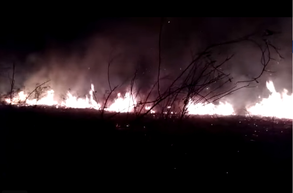 A pastagem estava seca, segundo a narração. E essa condição da vegetação é um fator de risco para a propagação e até mesmo descontrole de queimadas.