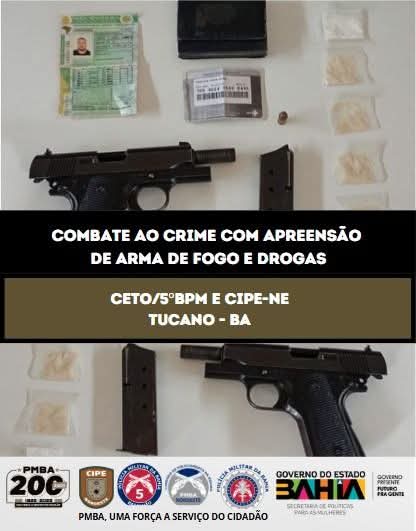 Com o resistente, que possuía histórico de prisão por tráfico de drogas, foram encontrados os seguintes materiais: 01 pistola Imbel, calibre .380, de número de série 27282; 07 papelotes de cocaína; 01 veículo Ônix Plus, placa RDA0A41.