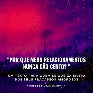 Quando não temos amor próprio, a gente começa a acreditar que o sofrimento que nos sobrevêm é de alguma forma merecido. “Ninguém me ama” ou “nunca serei feliz no amor”, são frases do cotidiano de quem tem crenças limitantes sobre relacionamentos. É por isso que, na intenção de manter essa crença, a gente descarta aquelas pessoas que poderiam dar certo conosco e nos fazer acreditar novamente no amor. Ou seja, você não dá certo com ninguém por que quem poderia dar certo com você, você não enxerga.
