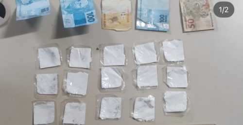 Durante a abordagem, foi realizada busca pessoal, ocasião em que foram encontrados 18 papelotes contendo uma substância análoga à cocaína, além de uma quantia em dinheiro em espécie.